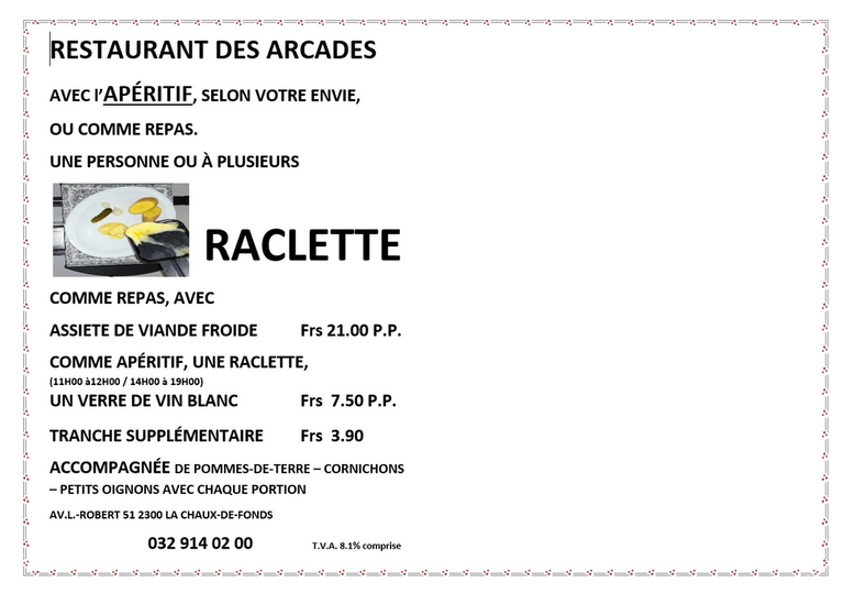 Restaurant à la Chaux de Fonds ouvert le dimanche